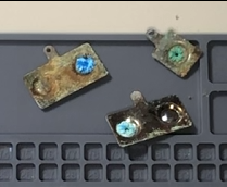 取り外したパーツです。電池の液漏れで青色になってしまっております。