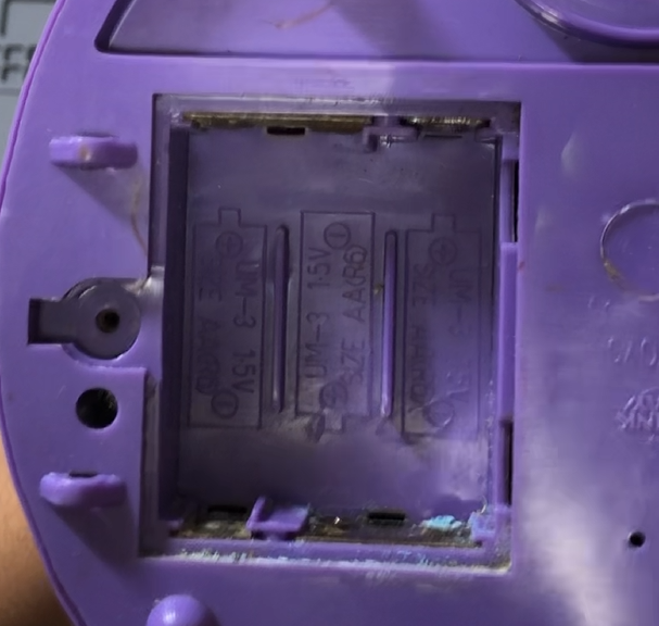 液漏れでめちゃくちゃです。ここが問題の大本で部品の交換が必要そうです。出品者が電池を取り外して送ってくれて助かりました。たまに電池が入れっぱなしのままで液漏れの電池を捨てないといけないこともありました。地味に電池を捨てるのって面倒です。