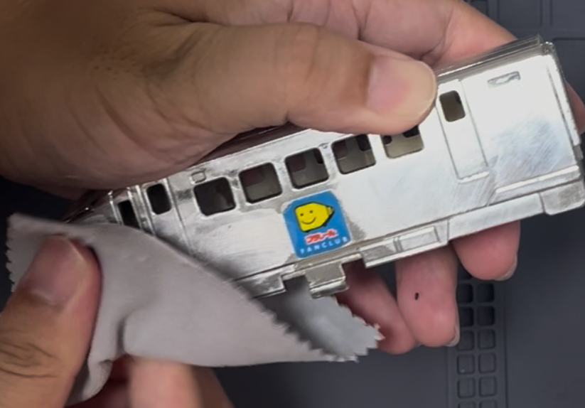 まずは車体のシールをはがしていきます。この時特にシールはがし液とかを使用しなかったので結構大変でした。シールをはがした後もねばねばしていました。